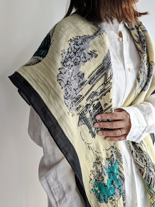 サイズ感や季節ごと1%づつ調整された混合素材とボリューム感。誰もが着心地が良く、絵画を身につけているような、美しいスカーフを展開しています。