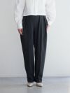 2タックのオーバルシルエットのパンツをイージーに仕上げた一枚。ヒップから裾にかけてぐっとテーパードさせたメンズライクな2タックイージーパンツ。裾ダブルの仕上げは足元に重厚感が生まれクリースラインを際立たせます。ウエストはゴム仕様に加えフィット感を高めるドローストリング仕様に。