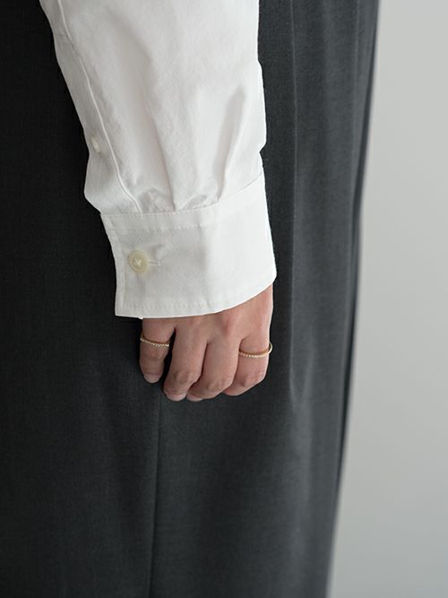 フリルカラーにデタッチャブルの共地リボンをあしらいクラッシックなムードを漂わせる新ブラウス。ボディは、ショートレングにし、リラックスフィットながら大人が着こなせるシルエットに仕上げました。