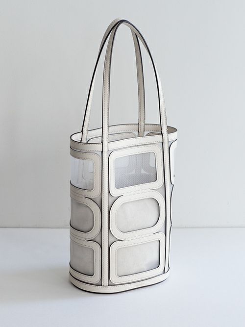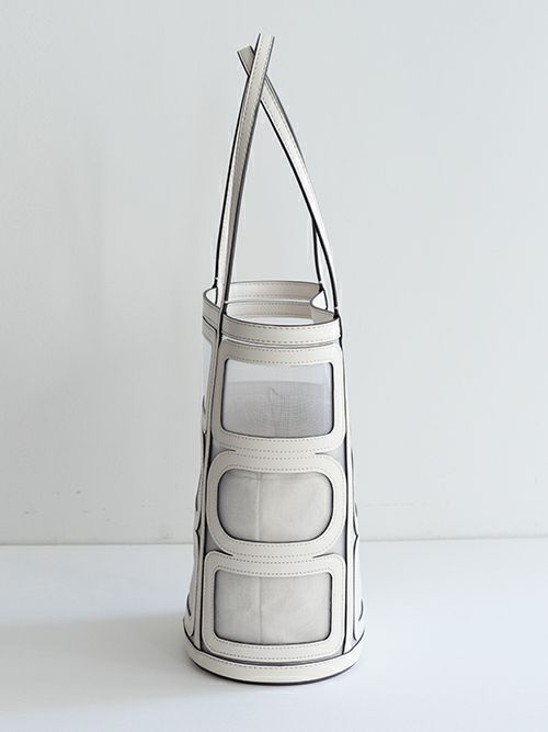 チュールの甘い印象がある素材ではありますが、骨組みのフレームデザインが個性を出し少し縦長にしたフォルムが大人な印象を与えてくれます。これからの季節涼しさを与えてくれるアイテムの一つです。