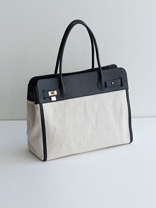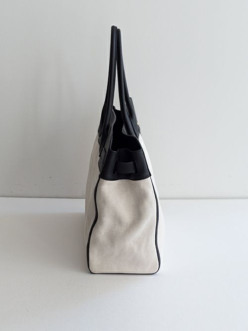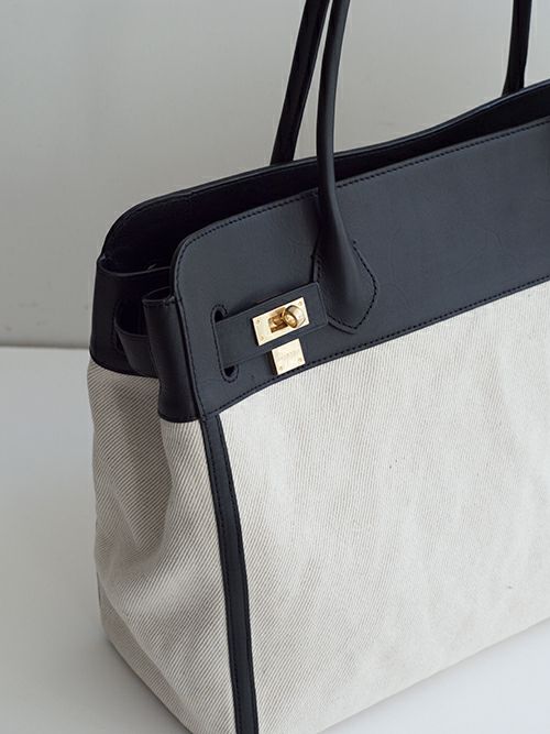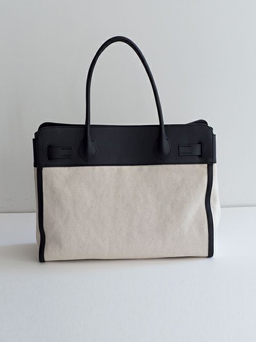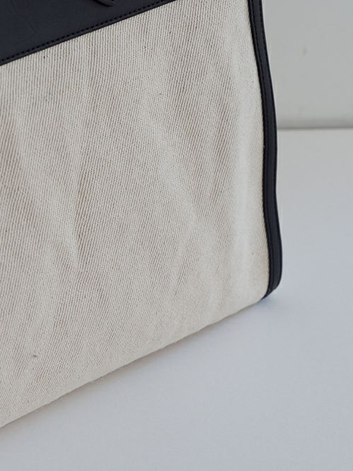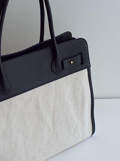 レザーとコットンリネンのキャンバスコンビのトートバック。オフィス仕様なデザインにキャンバス生地を使用することでオンオフ問わず使用頂けるトートに。男性女性問わずお持ちいただける少し大きめで、肩にかけられる長さのハンドルにしており、小旅行にも最適な大きさです。季節は関係なく通年使用して頂けて、柄物の装いなどに合わせも邪魔をせずシックに決まります。