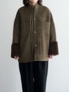 柔らかく羊毛の中でも最高品質といわれるメリノウールを使用したブルゾンコート。二枚の生地を一枚に縫い合わせたリバー仕立てで保湿性を高め、更に裏生地を無くすことで軽量な着心地を実現。柔らかく滑らかな風合いのものをセレクトしています。Gジャンを基調に、ビッグシルエットで丸みのある女性らしいデザインに。フロントのタックディテールやシームラインがワークテイストでありながら、袖口にあしらったフェイクムートンが大人なムードを演出してくれます。