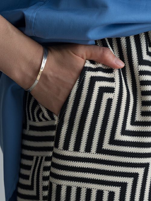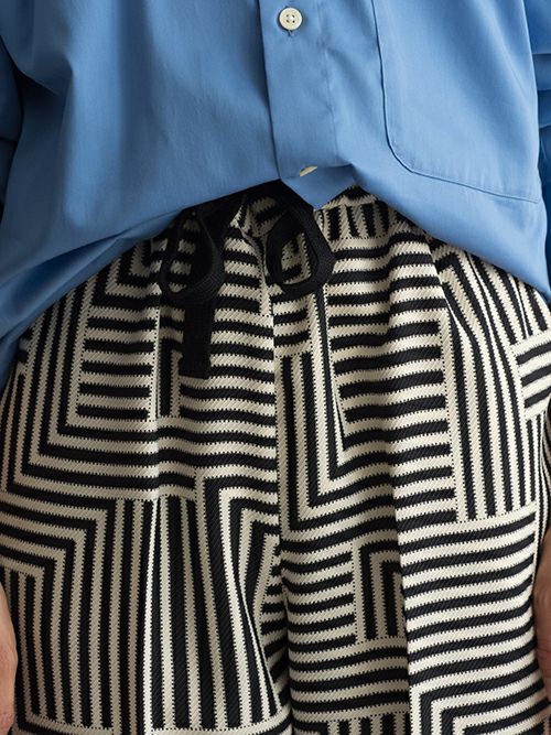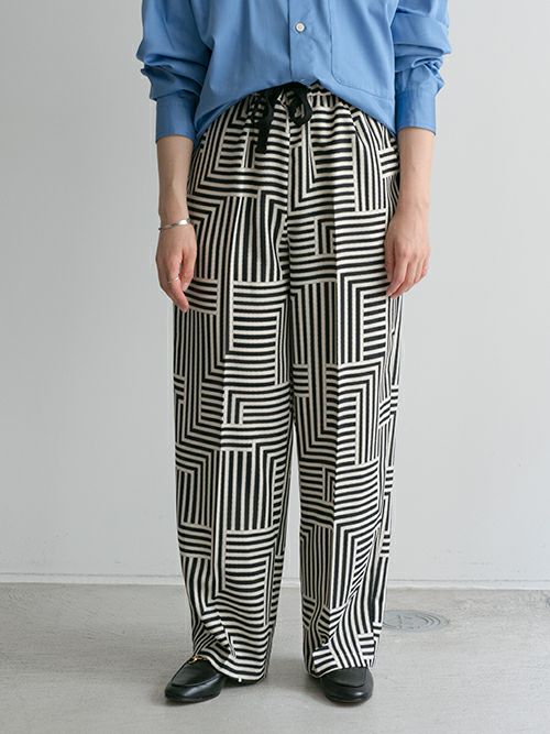 大胆な幾何学プリントが引き立つワイドパンツ。
