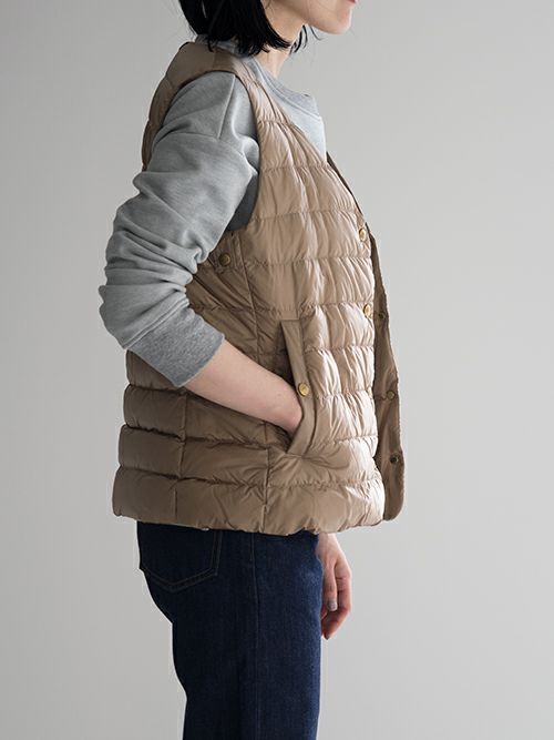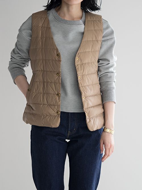 ダウンはホワイトグースダウンをダウン90%、フェザー10%と贅沢に使用。これにより美しいシルエットと軽さと保温性が非常に高いダウンになります。