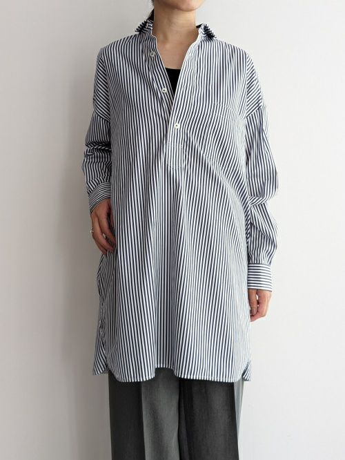 小ぶりの襟が可愛らしく印象的なチュニックシャツ。