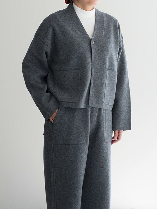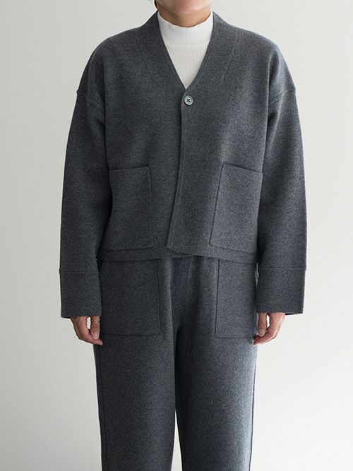 柔らかく、クリアでリッチな仕上がりが特徴の上質なメリノウール糸を使用したニットジャケットです。ミラノリブの適度なハリ感としなやかさで美しく保たれたシルエットは、スッキリとして高級感があります。