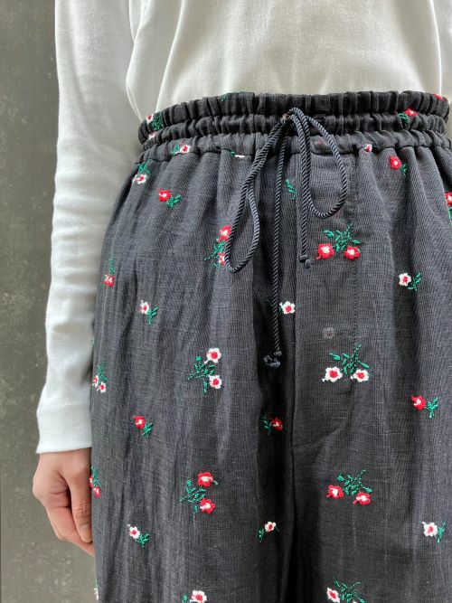 ティッカ フラワーエンブロイダリーパンツBLACK