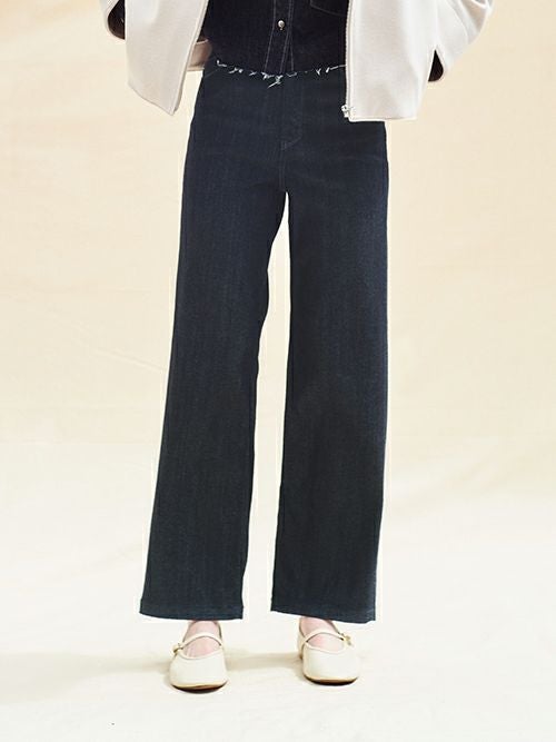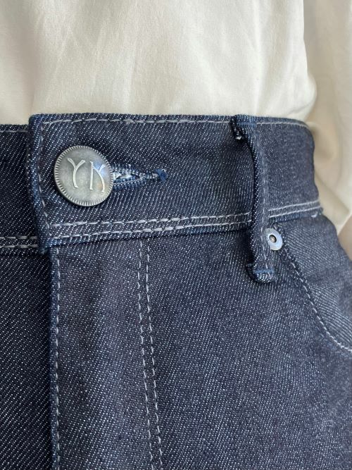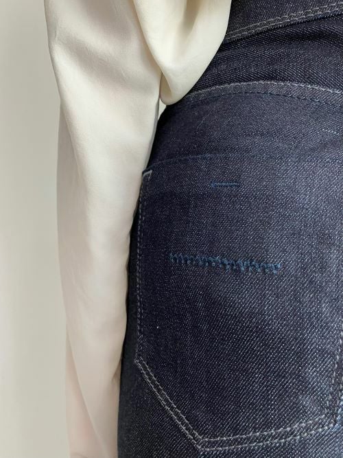 生地に再生繊維(セルロース)が入ったストレッチデニムです。ソフトな風合いの繊維が縦糸に入っており、履き心地がとても柔らか。ウエスト部分にもストレッチがきいているのも、とても魅力的な一着。