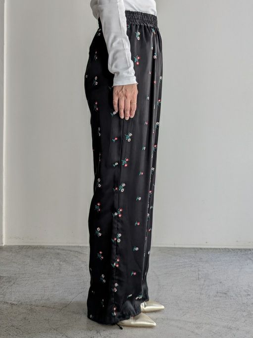ティッカ フラワーエンブロイダリーパンツ BLACK