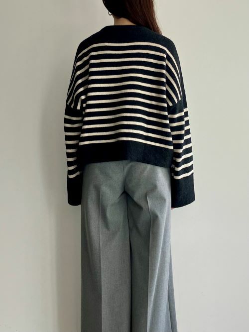 ロベルトコリーナ ボーダークルーネックニット BLACK.S