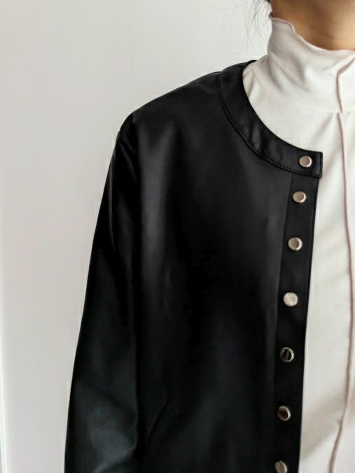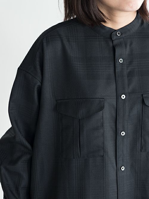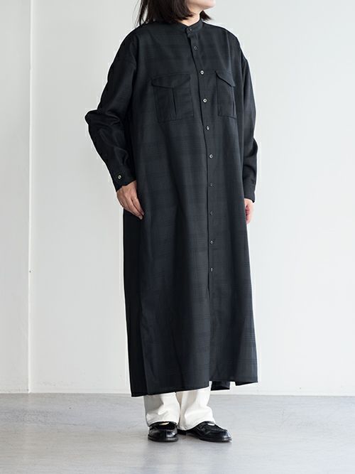 ティッカ ノーカラーチュニックシャツワンピースBLACK.C