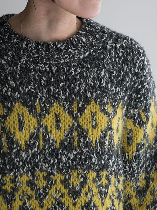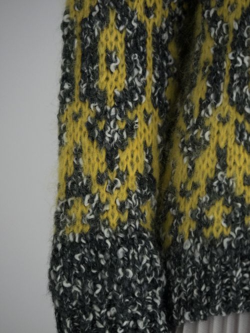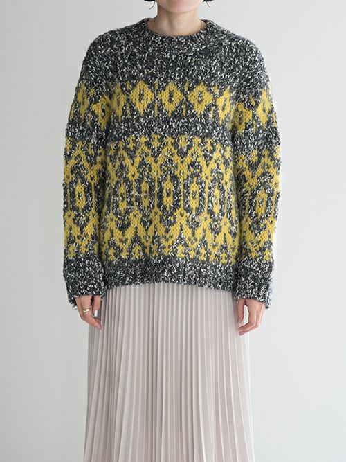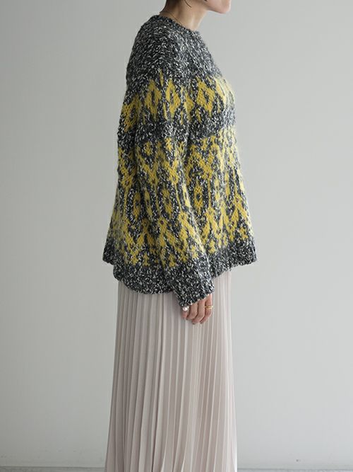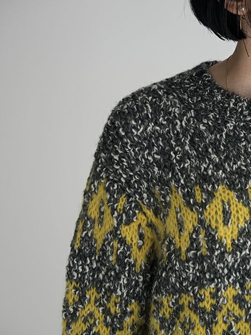 メランジをベースにイエローのジャカード柄が印象的なニット。