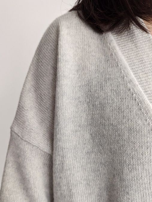 ウール、カシミヤ混の柔らかく温かなニットカーディガン。シンプルなデザイン故に、生地の上質さが際立つ一着です。