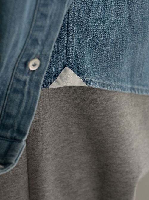着丈を少し短く設定する事で、シャツインだけでなくアウトスタイルが可能。気軽にスタイリングに取り入れていただけます。