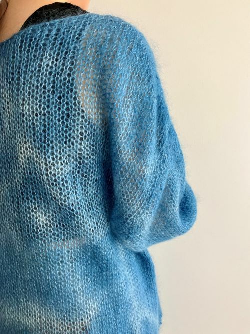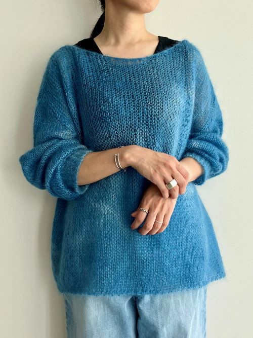 シルクモへヤ素材のニットに沖縄の職人による手染めを施したニット