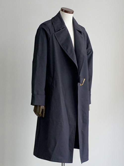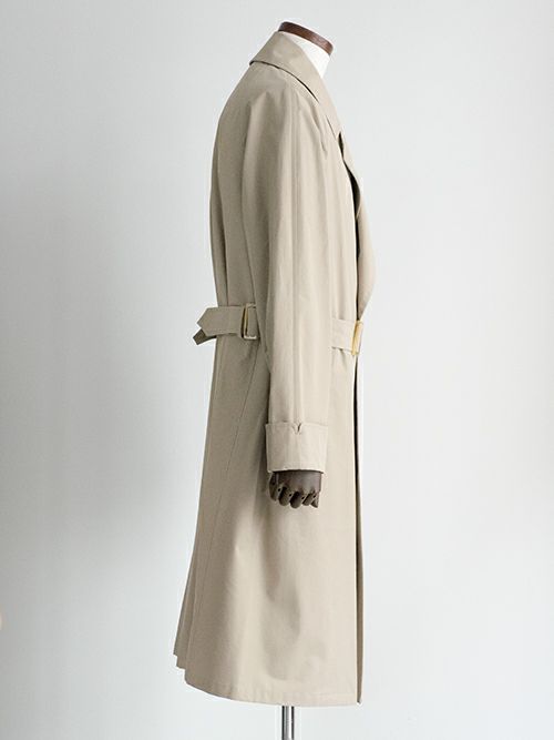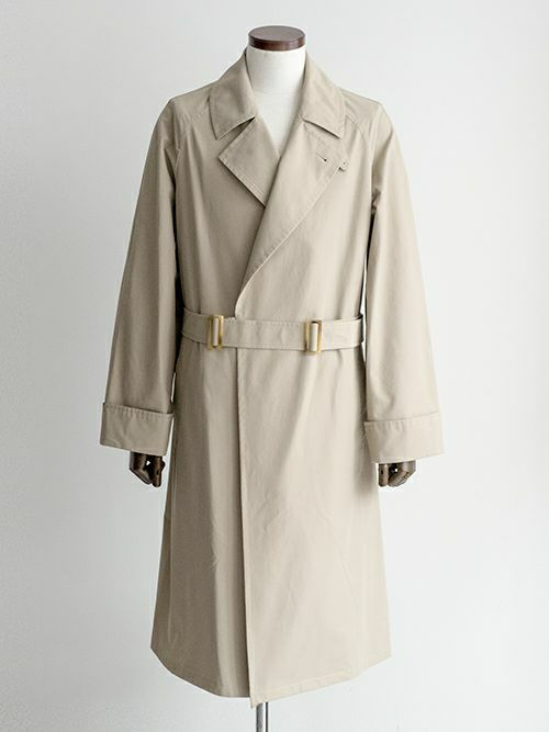 同じベルテッドコートとして括られる所謂ラップコートと違い、バックルがある分ベルトに安定感があり、ジャケットやスーツの上での着用が様になるのも魅力。