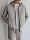 ストレッチ性の高いフードブルゾン。前身ごろとフードの詰め物はダウン90%、フェザー10%を使用しており、保温性も申し分ない一着。