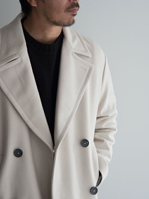 ウール、ナイロン混生地を使用したHevo(イーヴォ)のPコート「TRANI(トラーニ)」。