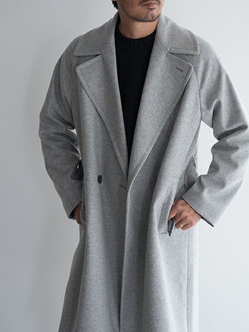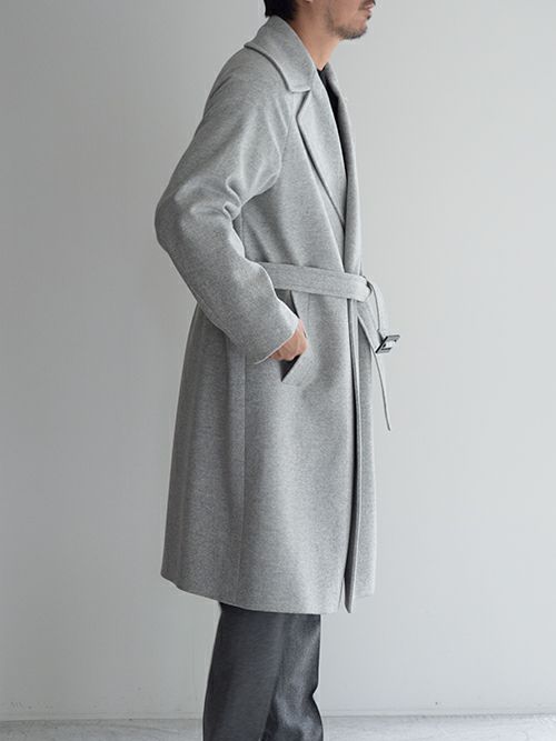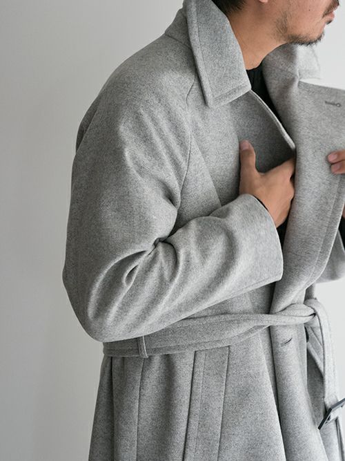 ウール、ナイロン混生地を使用したHevo(イーヴォ)のベルテットコート「BRINDISI(ブリンディジ)」。