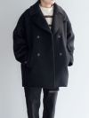 ハーフ丈のPコート。着丈やシルエット、ボタンやポケットのバランスなど何度も試作して追求したモデル。原料や技術に裏付けされた高いクオリティと機能性の高さと軽さが特徴のコート生地です。非常に美しく上質な毛並みと表情、その見た目に反する驚くほどの軽さ、保温効果に優れとても温かく、しなやかで柔らかくてうっとりする着心地です。先染めならではの軽さとしなやかさもオススメです。