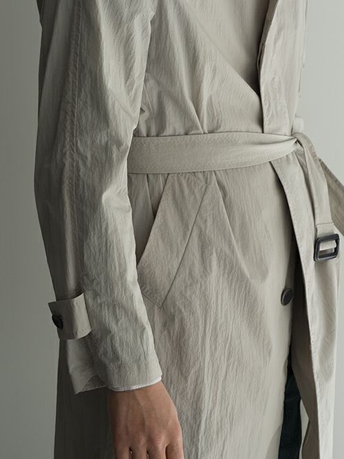 比翼仕立てにする事で、フロント釦を閉じた際のクラシックな雰囲気が印象的なステンカラーコート。