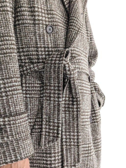 ゆとりのある身幅とラグランスリーブ仕様で、落ち感のあるこなれたシルエットが魅力的なダブルブレストコート。ベルトを締める事でメリハリのあるシルエットを作り出す事もできます。