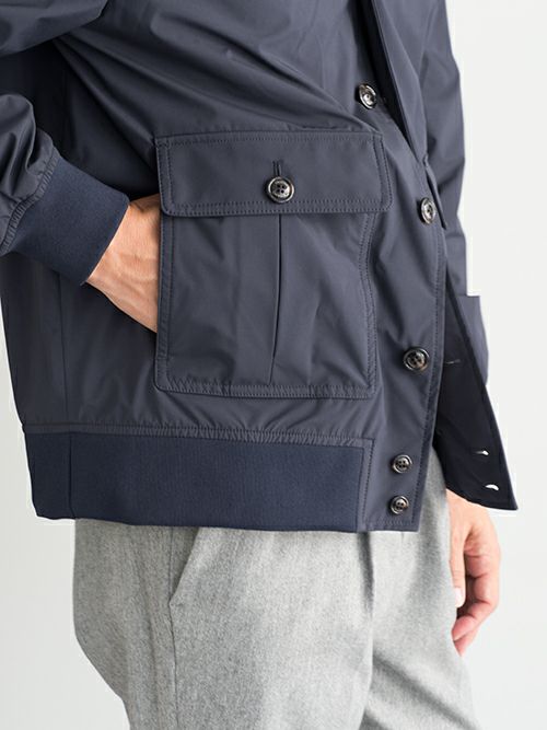 フロントの大きなポケットは、フラップを開けての使用だけでなくサイドからもハンドインできる作りになっており、利便性にも拘りが見える一着。