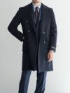 上質なウール、カシミヤ混のイタリア生地を使用したダブルブレストコート。クォータースリー着丈にする事で、コーディネートの幅が広がる一着に仕上がりました。