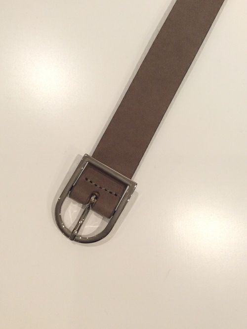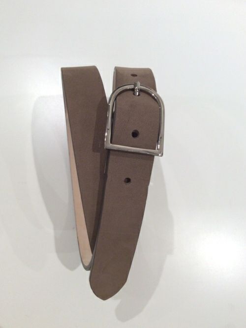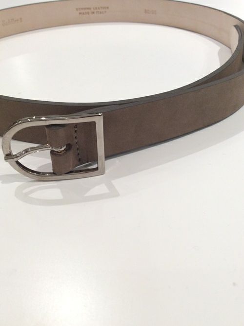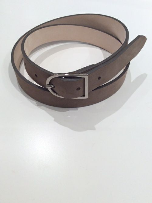 上質なスエード地を用いたミニマムデザインのレザーベルト。ラウンドカットのバックルが柔らかな印象です。