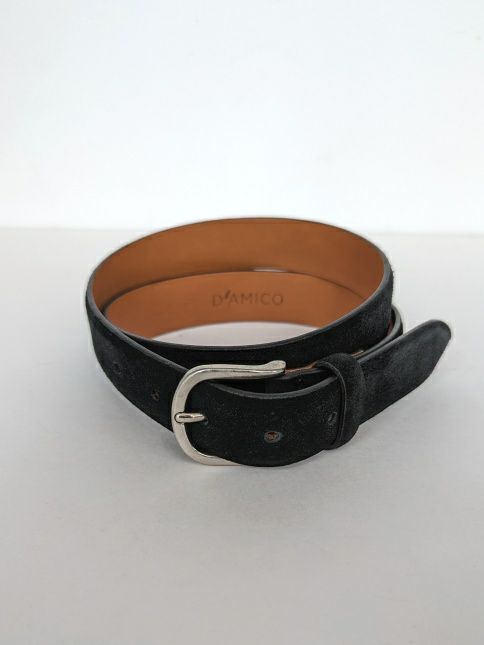 アンドレアダミコの代名詞と言えるスエードベルト。少し丸みを帯びたバックルの程よい柔らかさが魅力的で、確かなデザイン性と高級感のある仕上がりです。