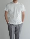 ジャケットのインナーに着用する事を前提に作成され、ネックが前に比べ後ろ側が高く設定されています。ジャケットを羽織ると、後ろからカットソーが見えるようになっており、見栄えだけでなく汚れ防止にもなる計算された作り。