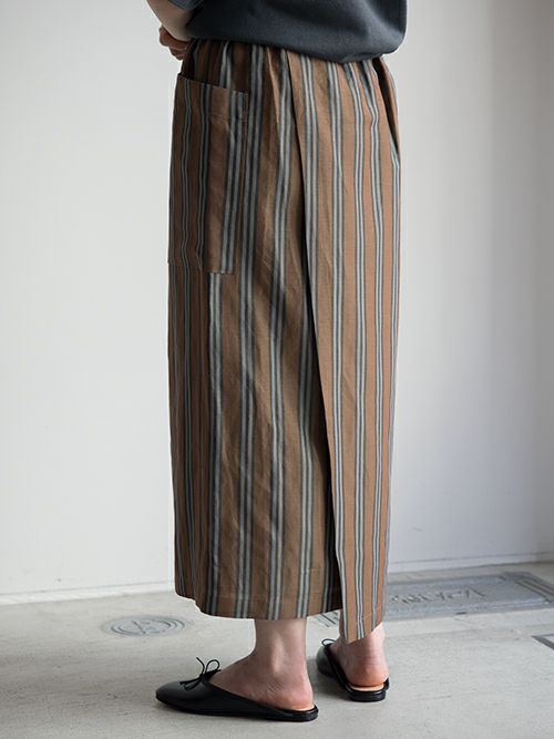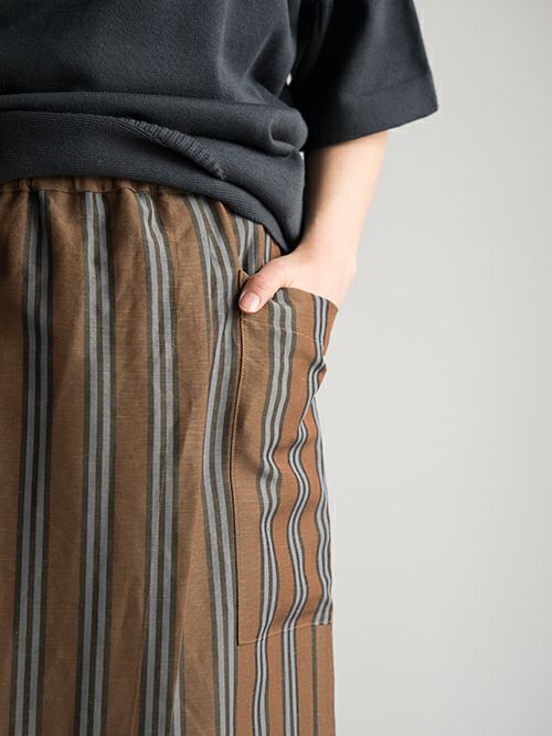両サイドのビッグポケットがスタイリングのアクセントに。リネン混のシャリ感のある素材で、夏でも涼しく履いて頂けます。ウエストはゴム仕様に加え、内側付属のドローストリングで調整可能です。