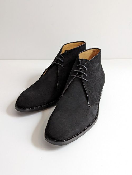 コンストラクションはマッケイでアイレットは3つ。シャープな木型を採用し、イタリア的な色気のある雰囲気のチャッカーブーツ。