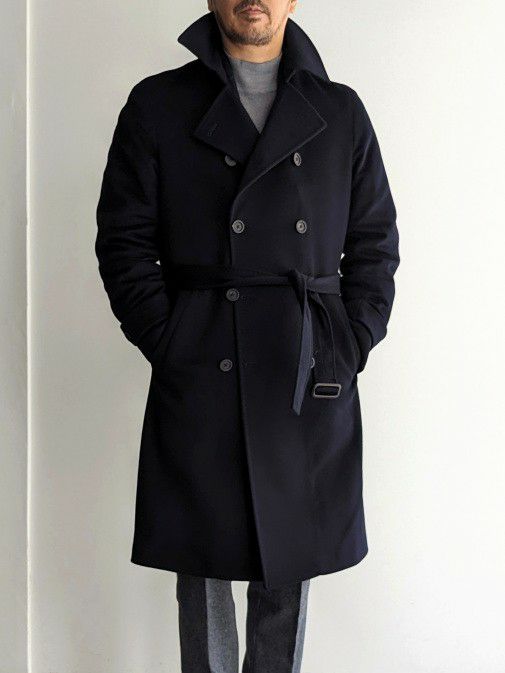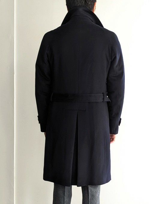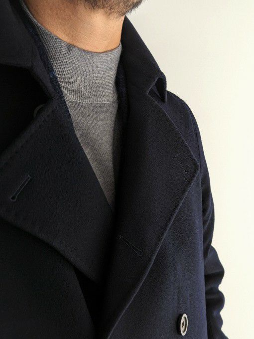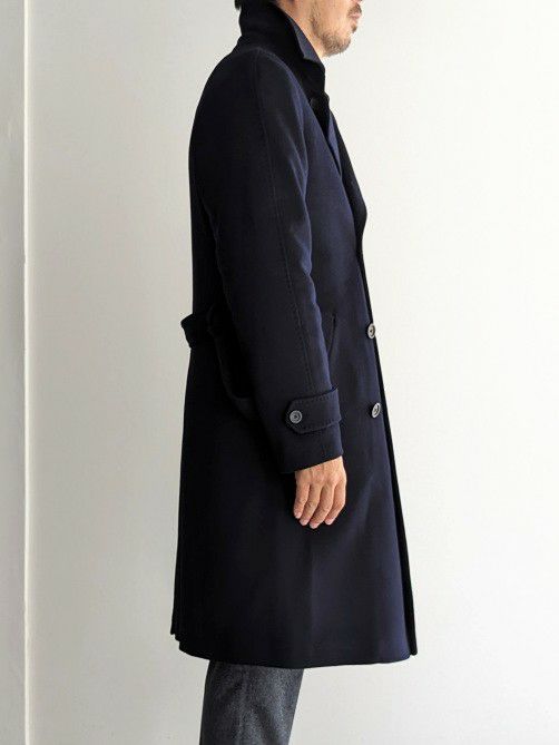 made in italyのダブルブレストロングコート。Loro Pianaのカシミヤ100%ファブリックを使用した最高品質な一着です。