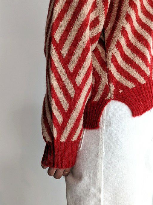 レトロな雰囲気漂うミドルゲージのVネックニット。