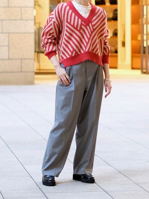 カットソーやシャツなどのインナーでがらりとスタイリングが変わります。トレンドに左右されないデザインも◎。混紡素材の為、着用感は見た目よりも軽い着心地です。