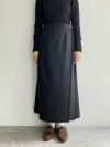 上質なキルト素材を使用した巻きスカート。サイドのレザーベルトでウエスト部分を調整して頂けるので、トップスインのスタイルもきれいにキマります。身長問わず履きやすい着丈になっており、フラットシューズやブーツなど、足元も選ばずに楽しめるのも嬉しいポイント。尚、ウエストはベルト3つ穴で位置真ん中のサイズになっております。ウエスト後ろはゴムが少しあり多少の伸縮がございます。