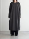 サラッとした肌触りが嬉しいAラインのワンピース。見た目はウール調で高級感のある素材です。袖もスッキリしており、さりげなく前後に入ったタックが立体感を生み出します。両サイドには秋冬らしいベロアテープをライン使いしており、横から見た時にもポイントになっています。ポリエステルなのでチクチク感もなく、シワになりにくいのもポイントです。
