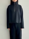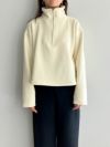 長めの毛足で密度がある裏起毛に、もっちり肉感のあるジャージ生地です。 柔らかくストレッチ性にも優れ、ご家庭でのケアもしやすい、あたたか楽ちん最高素材。 ハーフジップのスタンドカラープルオーバーで、 ジップを全開にしてもキレイに衿が立ちます。、あえてテレコを使用しないデザインで、スポーティーすぎない大人のスウェットに仕上がっています。