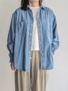 ストーンブリーチ加工を施したオーバーサイズのダンガリーシャツ。ヒップなどの気になる部分をカバーしてくれる着丈で、デイリーに使い勝手の良い一着です。