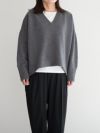 クラシカルなアイテムをモダンにアレンジしたビッグシルエットニット。ガンジーニットのディテール、雰囲気を残しつつサイズバランスを見直し、大人の女性が着用出来るVネックに仕上げました。インナーTシャツやシャツとのコーディネートをお楽しみ下さい。