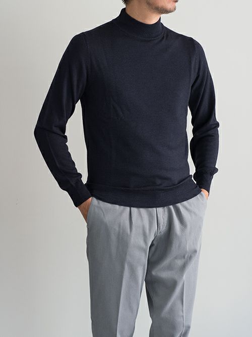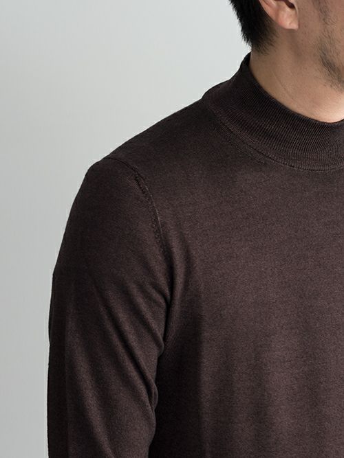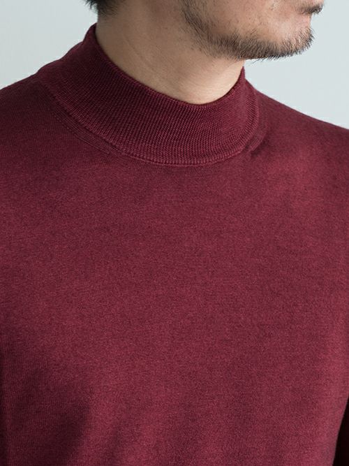 1枚でも、ジャケット等のインナーにも重宝するアイテム。モックネックが首元をこなれた雰囲気に彩ります。