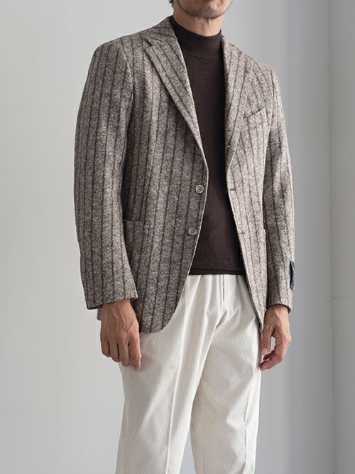柔らかな肌触りと温かな着用感で、タイト過ぎず緩すぎず、絶妙なシルエットが魅力的な一着。