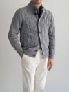 厳選されたウールを使用したケーブル編みのローゲージニット。ハンドポケットが付いており、アウターとしての見栄えも良い一着です。