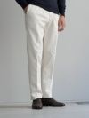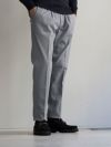 ニットやシャツと合わせたカジュアルなコーディネートから、ジャケットスタイルまでこなす汎用性の高さも際立つ一着です。裾幅は比較的細めなので、シューズはミニマムなスニーカーやローファーがお薦め。