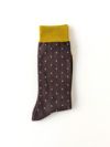 コットンナイロン混のソックス。ストレッチも効いていて快適な着用感です。落ち着いた配色のドット柄は、キャッチーさだけでなく上品な洒落感を併せ持った一足です。