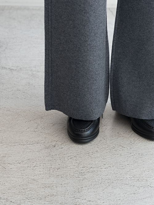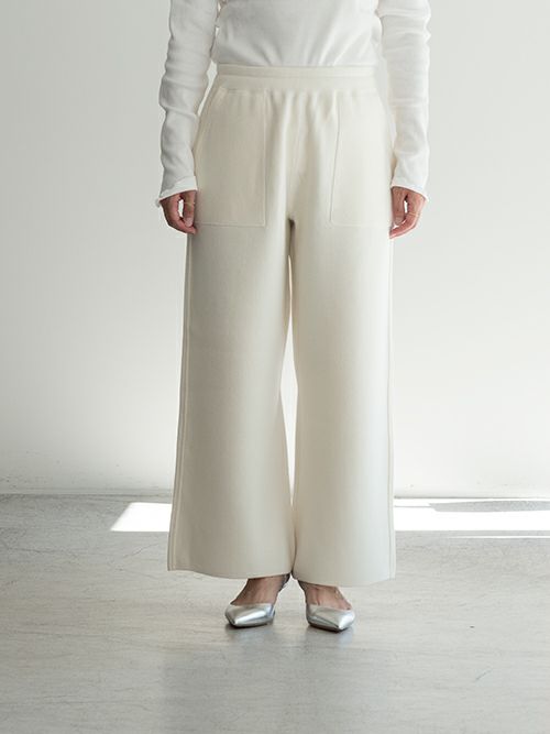 柔らかく、クリアでリッチな仕上がりが特徴の上質なメリノウール糸を使用したニットパンツです。ミラノリブの適度なハリ感としなやかさで美しく保たれたシルエットは、スッキリと見えるのに体のラインを拾いません。