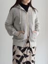 Kepaniの代表的モデル、ブランド誕生時より展開しているモデルでもありラフィー糸は、超長面綿と落ち綿を混ぜて作られ、ムラ感と柔らかさを持たせて、旧式編み機で緩めに編み、保湿性と肌触りを重視。洗ってもしなやかさを失わず、形が戻る再形成性が高いです。フード付きダブルジップパーカーでラグランスリーブ、見た目はややタイトにですが、伸縮性があるので締め付け感は少ないです。ゴールドジップがアクセントになります。
