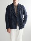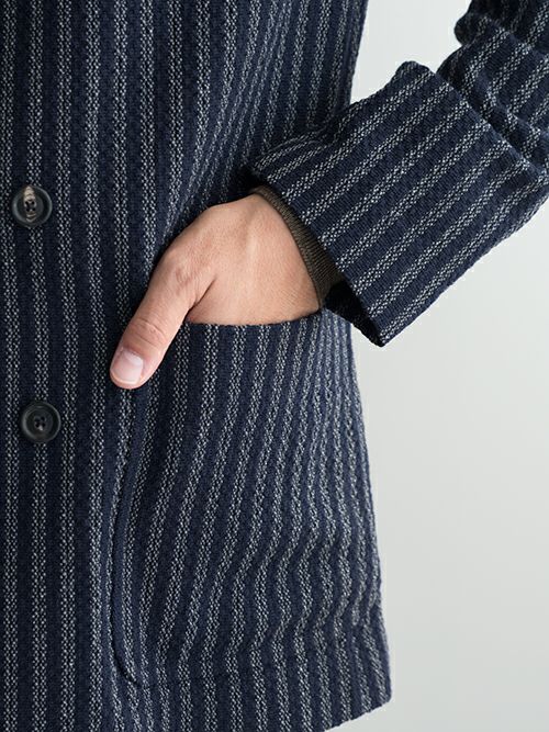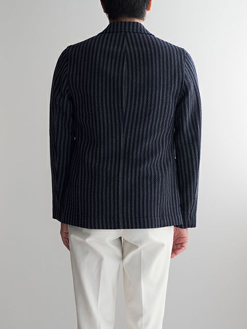 カットソーやニットの上に気軽に羽織れるストライプ柄ジャケット。もちろんタイドアップも可能な、オンオフ活躍する万能アイテムです。
