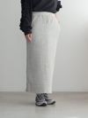 モデルでもありラフィー糸は、超長面綿と落ち綿を混ぜて作られ、ムラ感と柔らかさを持たせて、旧式編み機で緩めに編み、保湿性と肌触りを重視。洗ってもしなやかさを失わず、形が戻る再形成性が高いです。シンプルなストレートシルエットスカート。総ゴムにドローコードで調整可能な仕様。シルエットは程よくフィットしつつ締め付け感はなく使いやすい定番でひざ下~ミモレ丈のスエットスカートです。